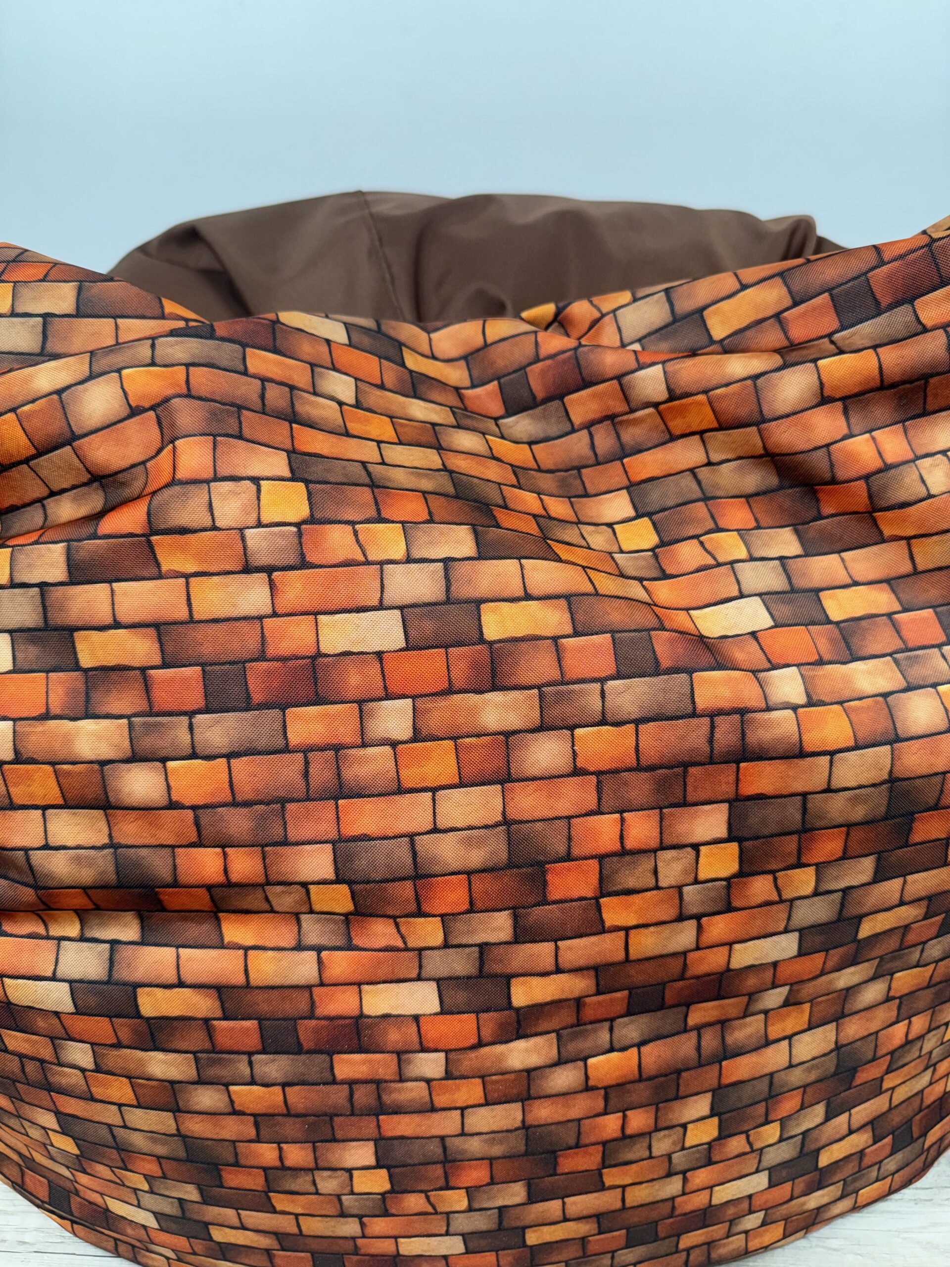 Tento kúsok nie je len o pohodlí, ale aj o vzhľade. Realistická potlač tehál na teplom hnedom podklade vytvára útulnú atmosféru a zároveň pôsobí cool. Je to ideálny doplnok do študentskej izby, herne alebo loftového bytu.